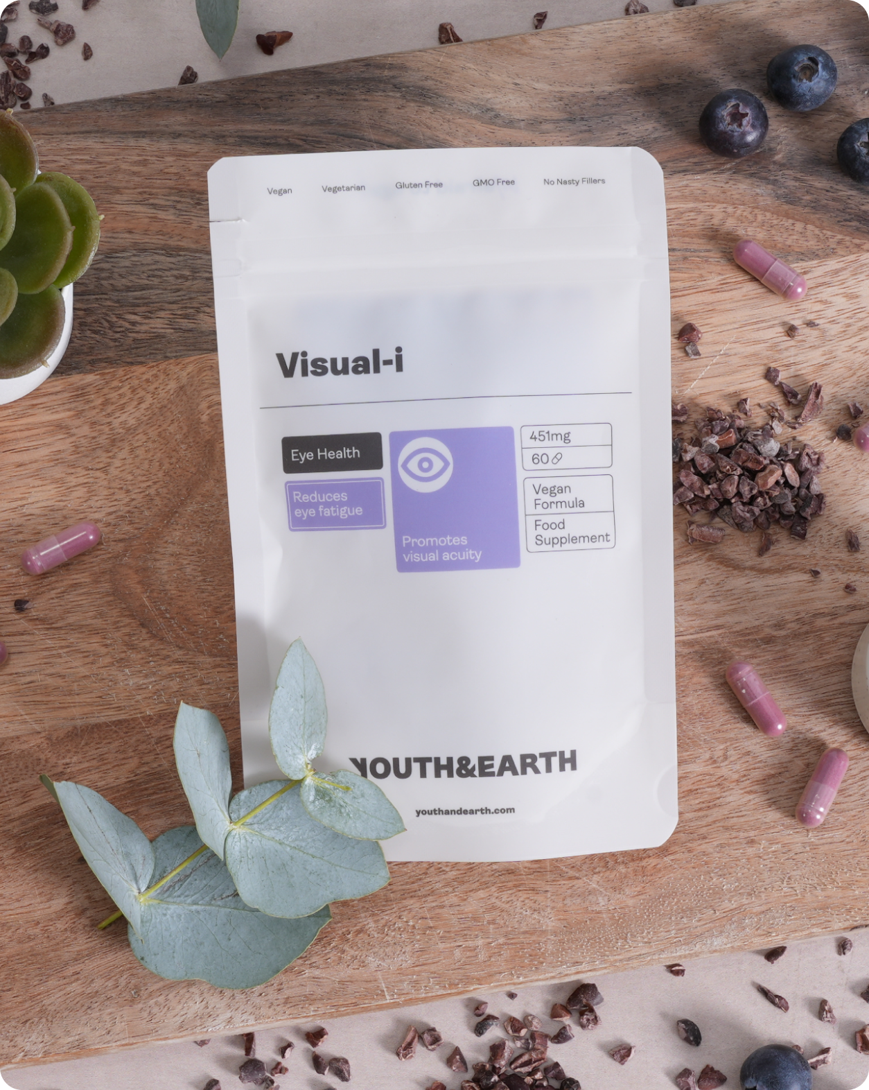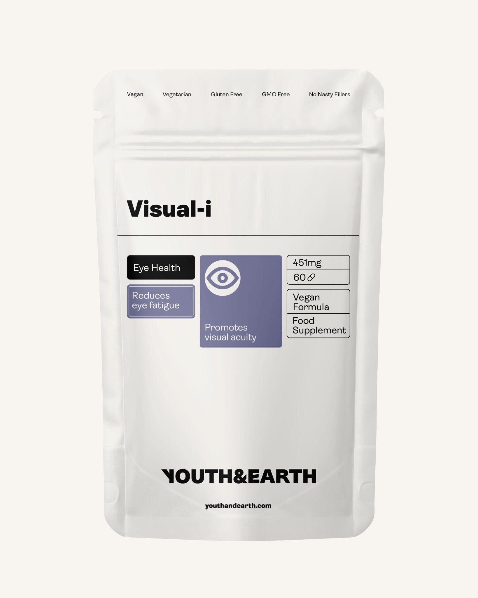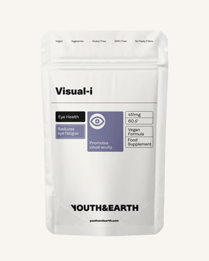 Clarity Unveiled: Youth & Earth Visual-i is specially formulated to promote clear vision. With a combination of lutein and zeaxanthin, essential carotenoids for eye health, our supplement is your partner in maintaining visual acuity.