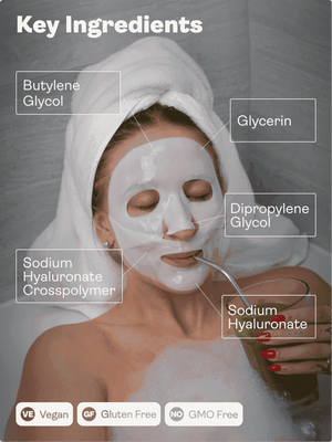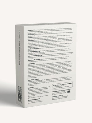 We're wary about including certain ingredients, hence our 5D Low Molecular Hyaluronic Acid Face Mask is free from sulphates, parabens, hydroquinone, benzoyl peroxide, phthalates, triclosan, formaldehyde, benzophenone, MIT, PHMB, D5, cocoamide DEA, MCT, mineral oil, animal derivatives, and fragrance, ensuring a safe and gentle formulation for all skin types.