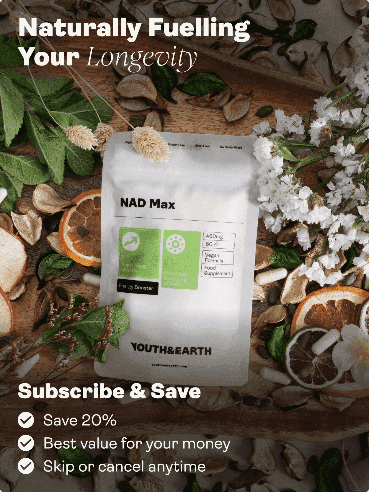 NAD Max nabízí revitalizující směs živin, včetně prekurzoru NAD+ NMN a apigenin, přírodní sloučeninu známou svou schopností bránit funkci CD38. Protein CD38 se s věkem v našich buňkách stává častějším a negativně ovlivňuje hladinu NAD+. Petržel je vynikajícím přírodním zdrojem apigeninu a může pomoci zvýšit NAD+ tím, že omezí aktivitu CD38, který spotřebovává NAD+. Zařadili jsme také další sloučeninu, EGCG, která se zaměřuje na enzym NNMT, jehož množství se s věkem zvyšuje, a inhibuje ho. Tento enzym brání recyklaci NAD+ v našich buňkách. Potlačením NNMT je možné ještě více zvýšit hladinu NAD+. Jsme přesvědčeni, že přidáním těchto dalších látek můžeme hladinu NAD+ ještě zvýšit.