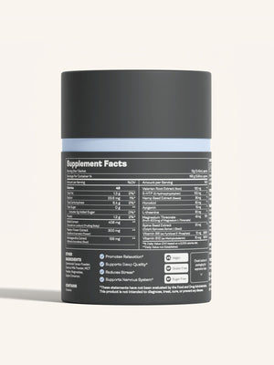 Složení : extrakt z Reishi, extrakt z mučenky, extrakt z Ashwagandhy, extrakt z kořene kozlíku lékařského, 5-HTP (5-hydroxytryptofan), extrakt z konopných semen (semen), honokiol, apigenin, L-theanin, threonát hořečnatý, extrakt ze semen páteře, vitamin B6 (jako pyridoxal 5'-fosfát), vitamin B12 (jako methylkobalamin), kakaový prášek, kokosové mléko v prášku, MCT prášek, mogrosidy, cejlonská skořice.