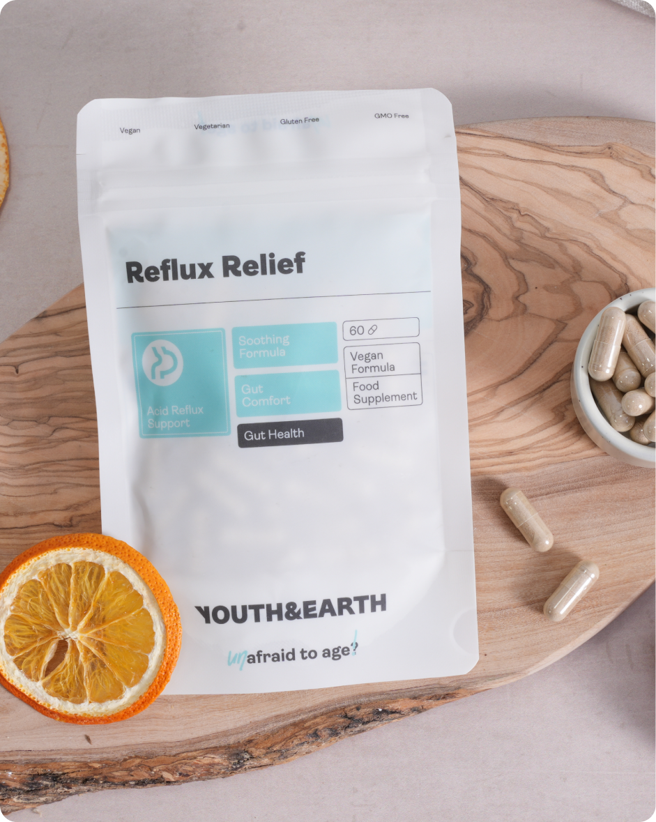 Experience the gentle yet effective relief of Reflux Relief by Youth & Earth. Trust us to provide a natural solution for acid reflux and digestive wellness.