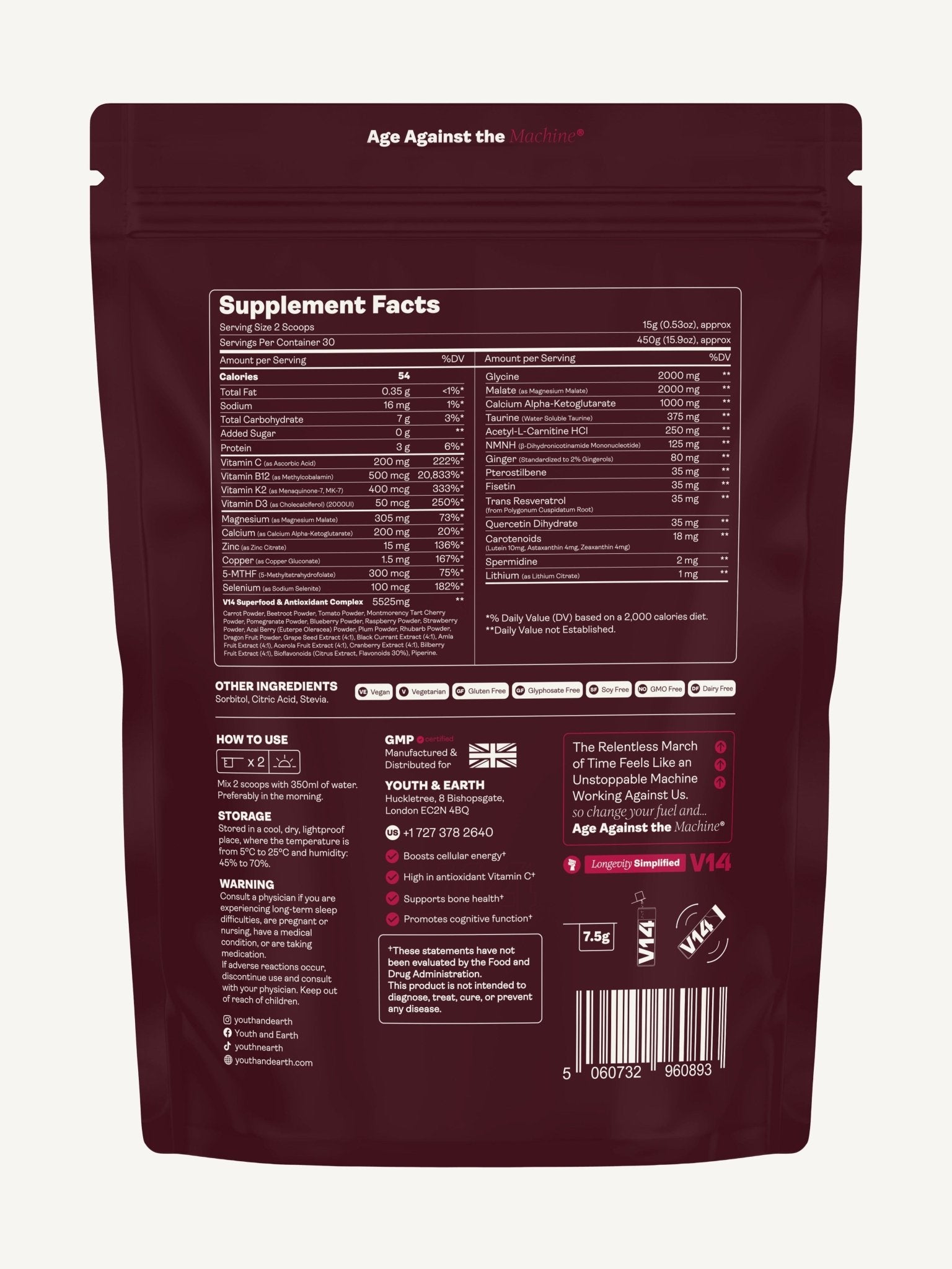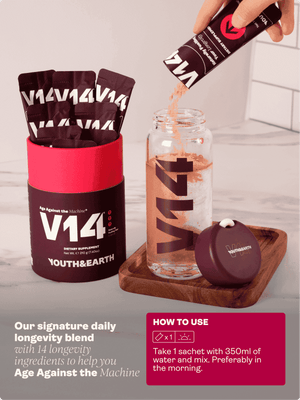 Od roku 2019, kdy jsme se stali průkopníky na britském trhu s doplňky stravy pro dlouhověkost, jsme lídrem v oblasti inovativních doplňků stravy. V14 představuje naši dosud nejpokročilejší formuli - poskytuje komplexní podporu dlouhověkosti za zlomek ceny nákupu jednotlivých doplňků.