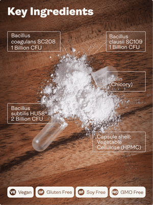 Besuchen Sie unseren virtuellen Laden und probieren Sie unsere Probiotikum auf Sporenbasis Ergänzung mit Bacillus subtilis HU58, Bacillus coagulans SC208, und Bacillus clausii SC109.