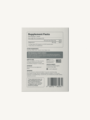 Youth & Earth Hydrogen Tablets sind Brausetabletten, die sich in Wasser auflösen und dabei molekulares Wasserstoffgas (H₂) freisetzen. Nach dem Auflösen ist das Wasser mit Wasserstoff angereichert, einem selektiven Antioxidans, das das zelluläre Gleichgewicht und die Vitalität unterstützt.