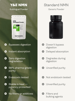 Um mehr über NMN und NR zu erfahren, lesen Sie bitte: NAD+ und Altern – Wie Sie Ihren NAD+-Spiegel auf natürliche Weise steigern können