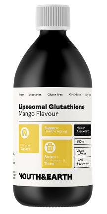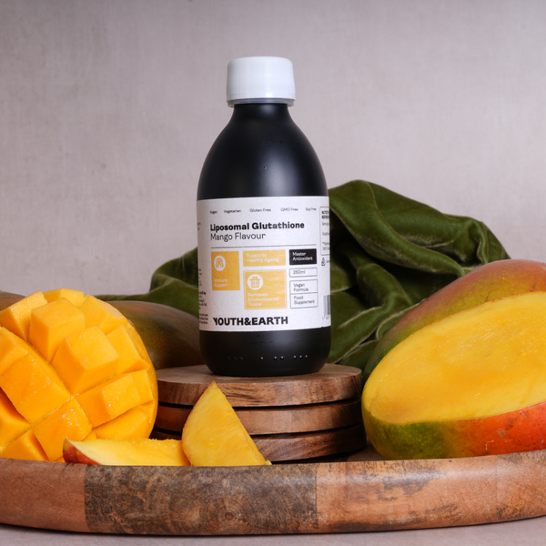 Youth & Earth's Liposomales Glutathion Liquid liefert 400mg Glutathion pro Portion in einem praktischen, wohlschmeckenden natürlichen Mangogeschmack. Dieses flüssige Nahrungsergänzungsmittel wurde mit der fortschrittlichen liposomalen Technologie formuliert, um die Bioverfügbarkeit zu verbessern. Es unterstützt das allgemeine Wohlbefinden, die Zellabwehr und den antioxidativen Schutz - ideal für alle, die Energie, Hautgesundheit und inneres Gleichgewicht erhalten wollen.
