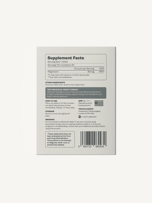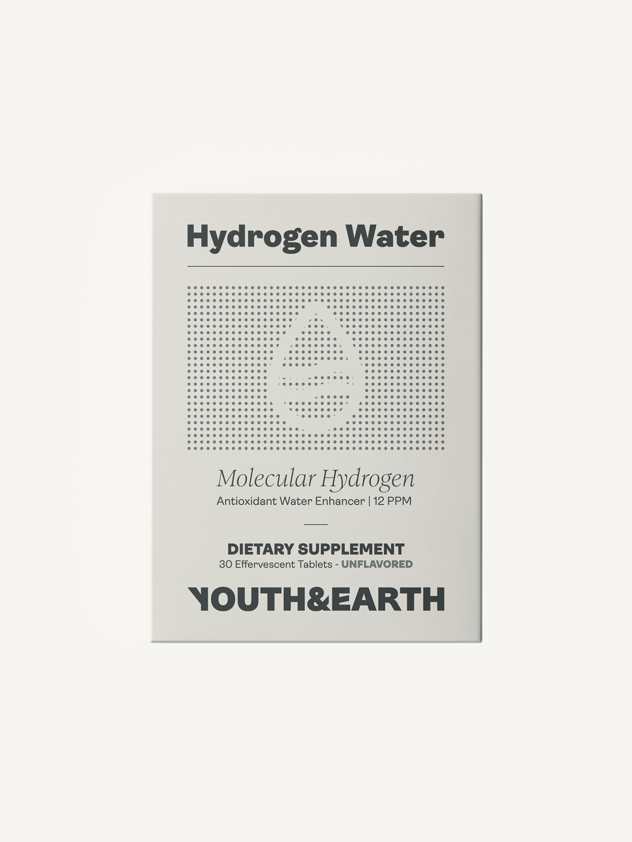 Youth & Earth Molecular Hydrogen Tablets are effervescent tablets that dissolve in water to release molecular hydrogen gas (H₂). Once dissolved, the water becomes enriched with hydrogen, a selective antioxidant that supports cellular balance and vitality.