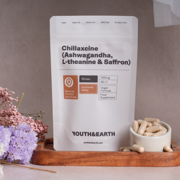 CHILLAXCINE (Ashwagandha, L-theanine & Saffron) 335mg, 60 Capsules - Youth & Earth EU Store
