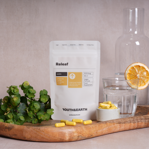 RELEAF es un suplemento combinado exclusivo diseñado especialmente para Youth & Earth destinado a apoyar el metabolismo y equilibrar los niveles de azúcar en sangre. Es una rica fuente de berberina que activa el gen de la longevidad AMPK - un componente clave de la regulación metabólica. Cuando se combina con silimarina, berberina también se ha demostrado para mejorar la salud cardiometabólica.