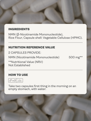 Para obtener los mejores resultados, recomendamos tomar NMN a primera hora de la mañana con el estómago vacío, ya sea en cápsulas o en polvo. Si ha optado por la forma en cápsulas, le recomendamos tomarlas con un vaso de agua. Si ha optado por la forma en polvo, le recomendamos que coloque una cucharada (o 2 cucharadas, dependiendo de la dosis recomendada) bajo la lengua y simplemente deje que se disuelva. Si el sabor le resulta ligeramente ácido, puede mezclar el polvo en un vaso de agua. Después de tomar NMN (en polvo o en cápsulas), espere al menos 30 minutos antes de ingerir cualquier alimento o bebida, excepto agua.