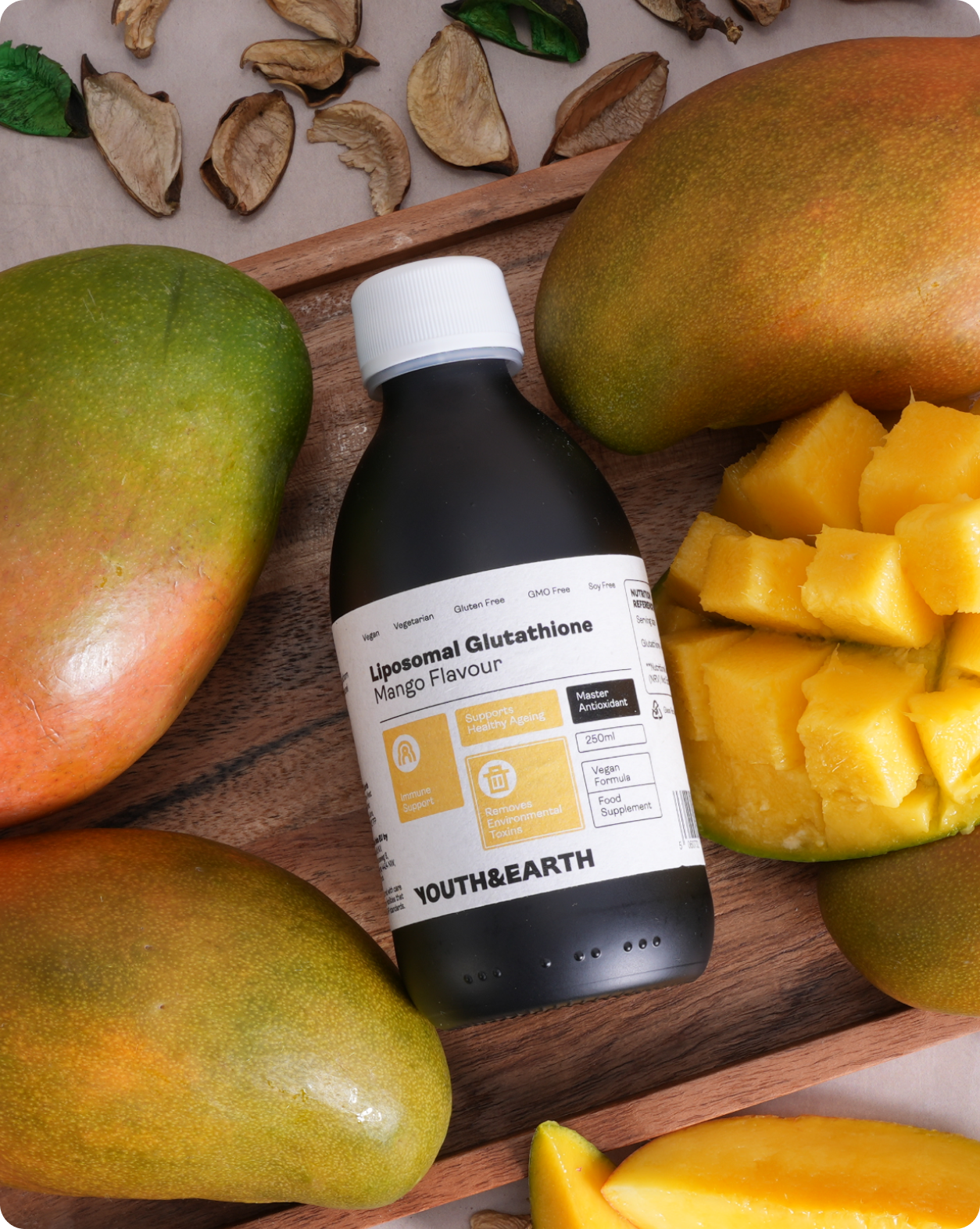 Le Glutathion liposomal liquide de Youth & Earthfournit 400 mg de glutathion par portion dans une saveur de mangue naturelle pratique et savoureuse. Formulé avec une technologie liposomale avancée pour améliorer la biodisponibilité, ce supplément liquide soutient le bien-être général, la défense cellulaire et la protection antioxydante - idéal pour ceux qui cherchent à maintenir l'énergie, la santé de la peau et l'équilibre interne.