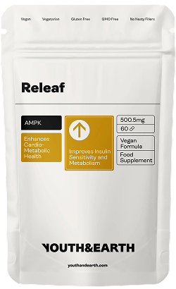 RELEAF est un supplément combiné exclusif conçu spécialement pour Youth & Earth destiné à soutenir le métabolisme et à équilibrer les niveaux de sucre dans le sang. Cette riche source de berbérine active le gène de longévité AMPK - un élément clé de la régulation métabolique. Associée à la silymarine, la berbérine s'est également révélée capable d'améliorer la santé cardiométabolique.