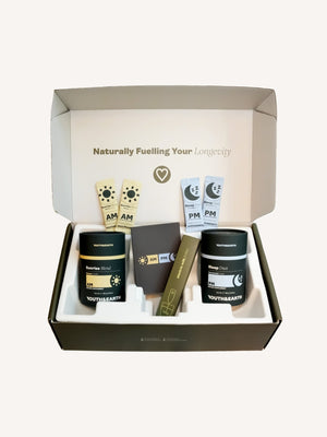 Améliorez votre routine avec le AM : Sunrise Blend & PM : Sleep Dust Bundle - votreclé pour une vie plus équilibrée, vibrante et rajeunie. Parfait pour ceux qui recherchent un un regain d'énergie naturelle le matin et un soutien à la relaxation le soir.