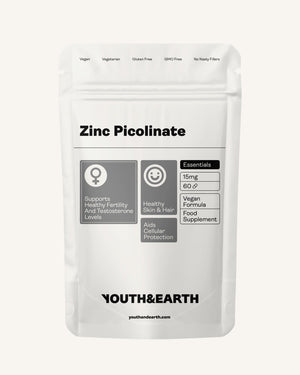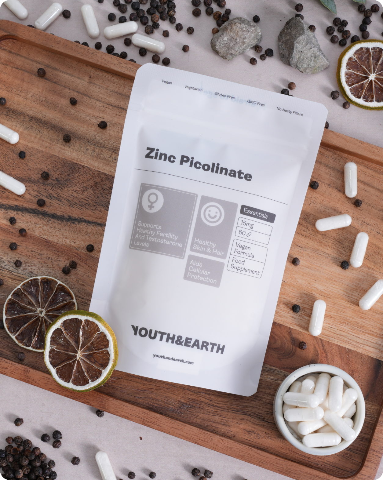 Elevate your health naturally with Youth & Earth Zinc Picolinate. Combining science and nature, this supplement is your partner in achieving immune resilience, reproductive health, and youthful vitality. Embrace a vibrant, healthier you—choose Youth & Earth Zinc Picolinate today!