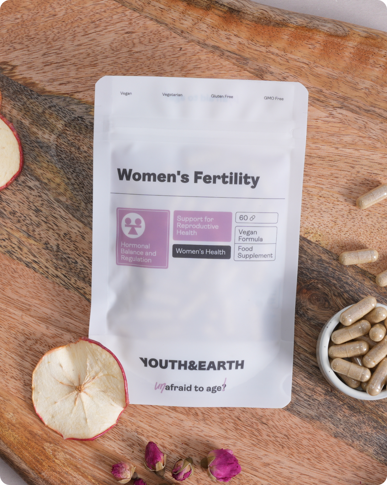 In Youth & Earth diamo priorità alla purezza e celebriamo il vostro benessere. Women's Fertility è un rifugio da ingredienti artificiali, allergeni, glutine e OGM. Utilizziamo solo i migliori ingredienti naturali e vegani, creando una potente miscela di vitamine, minerali, erbe e altri componenti scelti meticolosamente per potenziare il vostro percorso di salute riproduttiva.