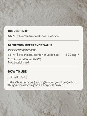 Para melhores resultados, recomendamos que tomes NMN logo de manhã com o estômago vazio, quer tomes as cápsulas ou o pó. Se estiveres a tomar a forma de cápsulas, recomendamos que as tomes com um copo de água. Se optou pela forma em pó, recomendamos que coloque uma colher (ou 2 colheres, consoante a dose recomendada) debaixo da língua e deixe simplesmente dissolver. Se o sabor for ligeiramente ácido, pode misturar o pó num copo de água. Depois de tomar NMN (na versão em pó ou em cápsulas), aguardar pelo menos 30 minutos antes de ingerir qualquer alimento ou bebida, exceto água.