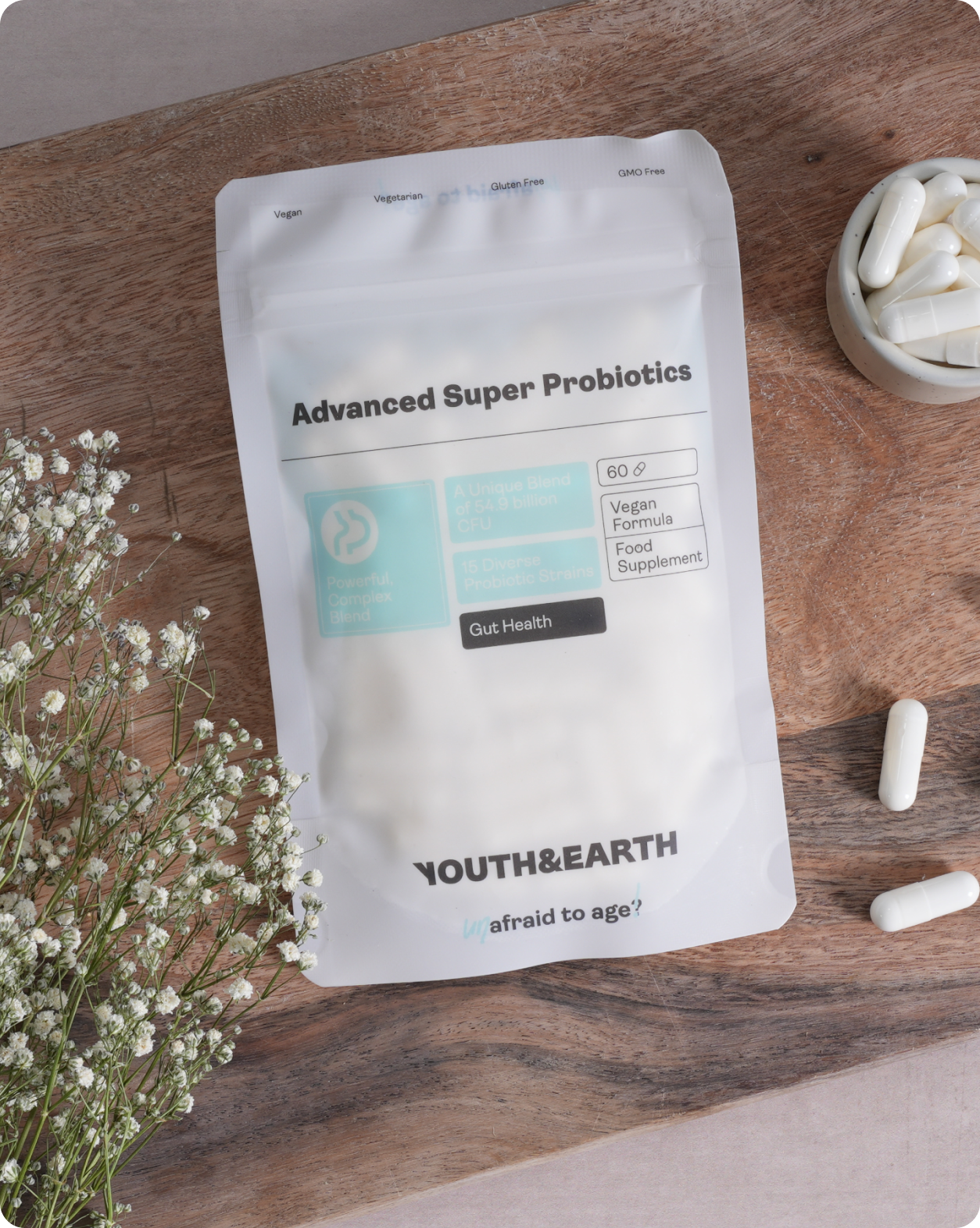 Experimente o poder transformador dos Super Probióticos Avançados e tome medidas proactivas para um intestino mais saudável e um bem-estar geral. Confie na Youth & Earth para apoiar a sua jornada para uma saúde óptima.